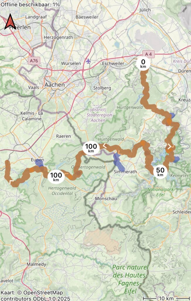 De route van Langerwehe naar Dolhain