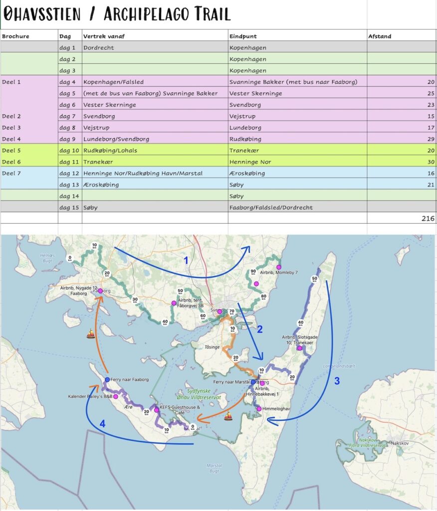 Zoals gebruikelijk zijn we alweer vroeg begonnen met plannen en organiseren. Allereerst omdat Mer nog nooit in Kopenhagen is geweest – een perfecte aanleiding om de stad meteen mee te pakken. Daarna rijden we door naar Falsled, waar onze 220 kilometer lange wandeling echt van start gaat. Onderweg slapen we, net als anders, op allerlei plekken: van een tent tot een klein kamertje via Airbnb en af en toe een hotel. Bij het vastleggen van de overnachtingen werd al snel duidelijk dat zeker één ding geen uitstel duldt: de ferry’s. Die hebben we dus maar meteen gereserveerd. Nu rest vooral het voorpretgedeelte. Voorbereiden, routes bekijken en richting eind juni onze rugzakken inpakken. De zin zit er nu al goed in.