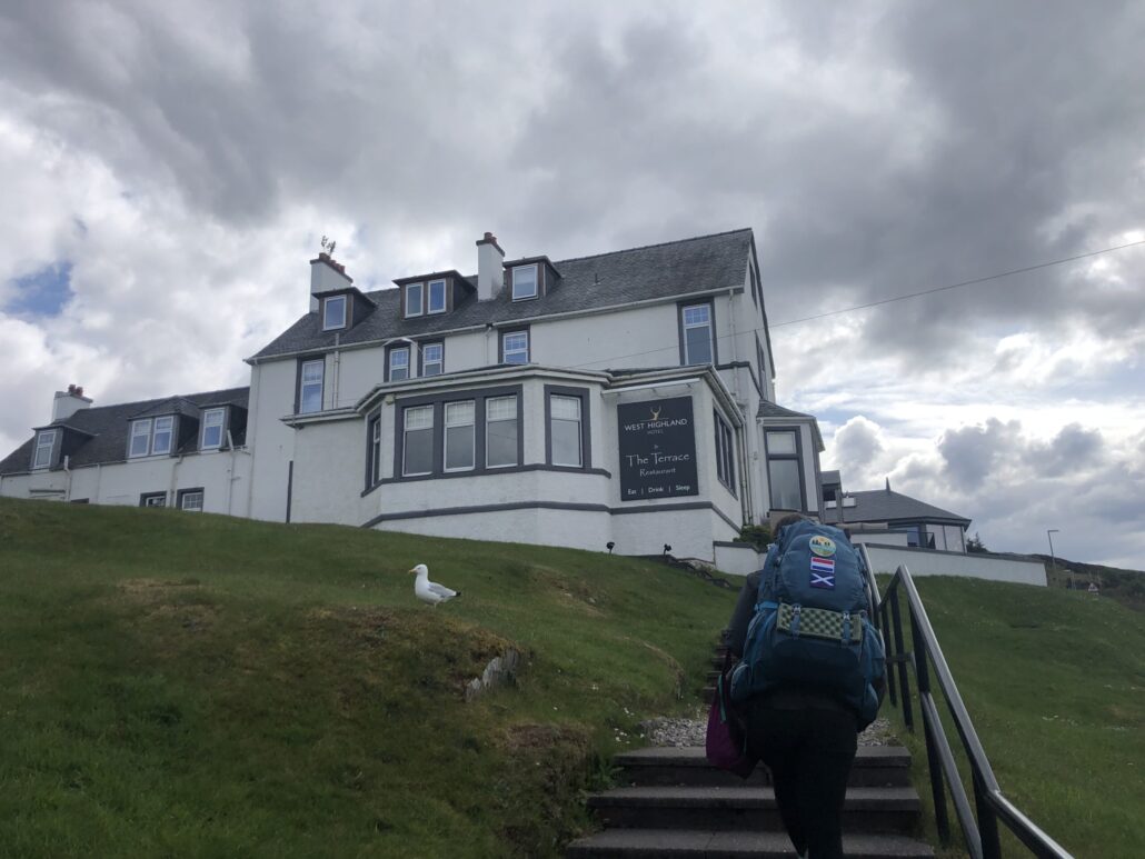 In Mallaig aangekomen checkten we in bij het hotel en spraken we met mede-challenger Mark voor een late lunch. Hij liep ook voor het eerst. Aardige vent. We stonden bovendien, zoals beloofd, met onze voeten in de Atlantische oceaan.
