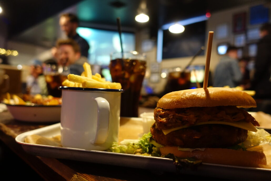 De vlucht naar Glasgow verliep verder voorspoedig en omdat ex defensie collega Saskia wist welke bus we naar het centrum moesten nemen, ging ook dat lekker vlot. Saskia ging naar haar hotel en wij naar het onze. Wij hebben alvast de treinkaartjes opgehaald en ’s avonds afgesproken met Saskia in een sportsbar om onder het genot vaneen lekkere hamburger de wedstrijd van Ajax te kijken.